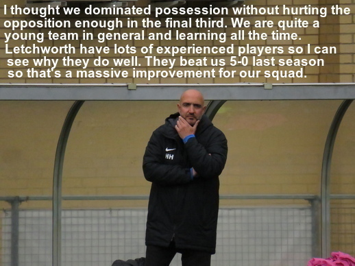 The above are the thoughts of Letchworth GC Eagles coach Paul Donnelly and Bush Hill Rangers Manager Halil Hassan after yesterday's 2-2 draw at Wodson Park. On the balance of play I thought it was just about the right result for each team to take a point from the Hertfordshire Senior County Premier Division game.